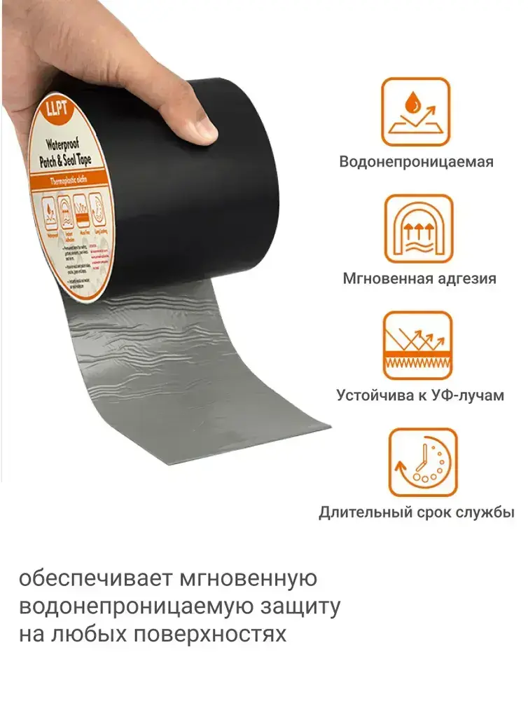 Клейкая лента заплатка для ремонта бассейна, лодок, протечек труб, палаток 100мм * 4 м / гидроизоляционная водонепроницаемая герметизирующая