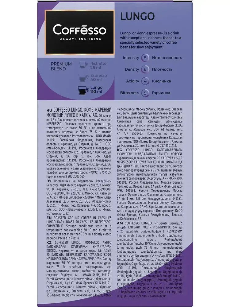 Кофе капсульный Coffesso Lungo blend, для системы Nespresso, 20 шт