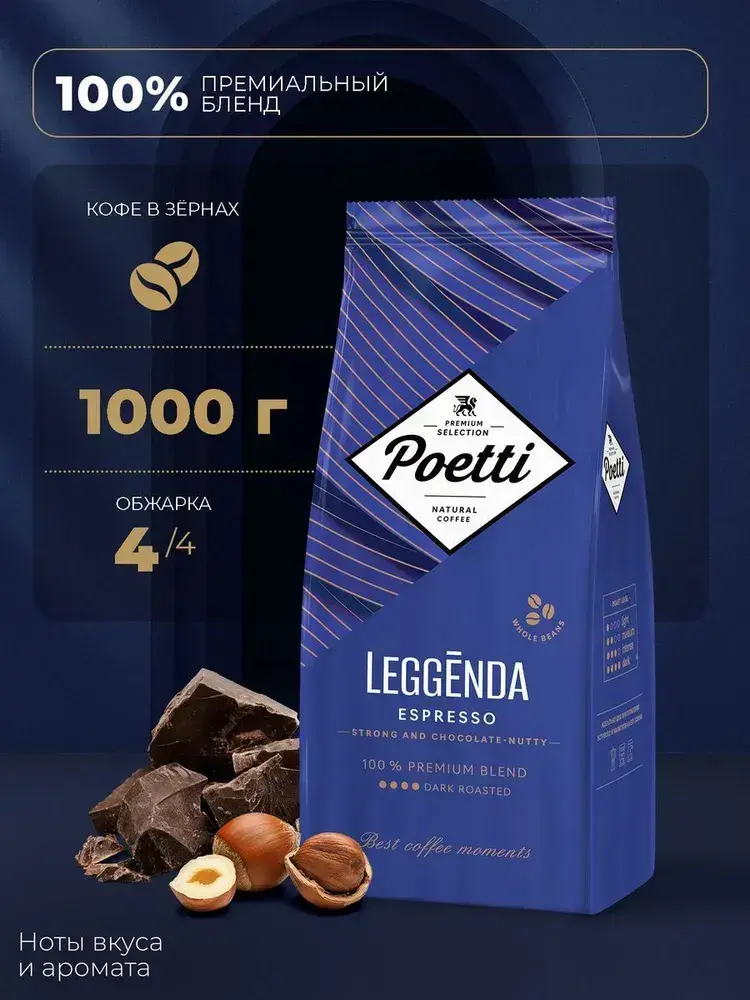 Кофе в зёрнах Poetti Leggenda Espresso, арабика, 1 кг