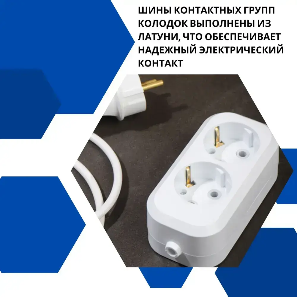 Колодка для удлинителя на 2 розетки, с заземлением 220В 16А