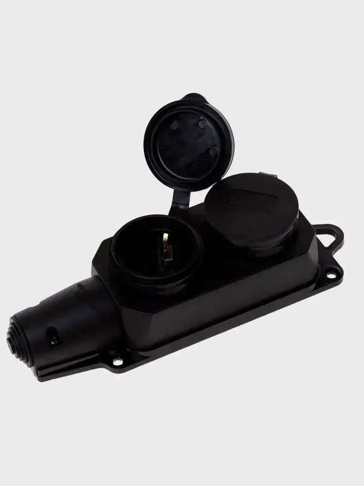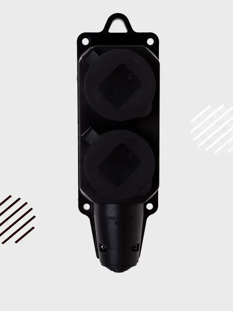 Колодка розеточная электрическая каучуковая IP44 влагозащищенная герметичная на 2 розетки, 16А, черный