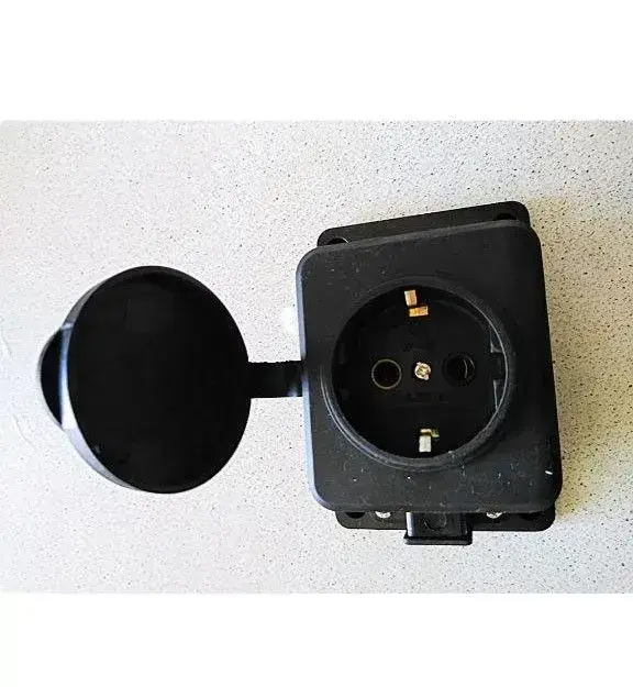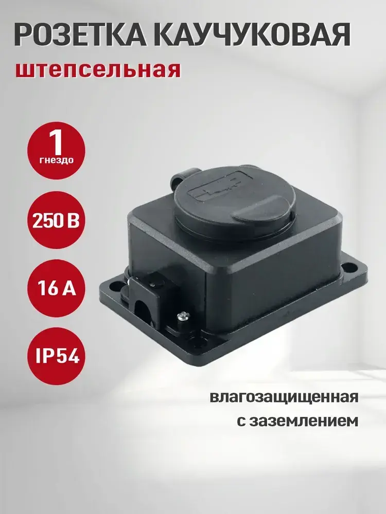 Колодка розеточная электрическая каучуковая с заземлением, розетка одноместная, IP 54, черный
