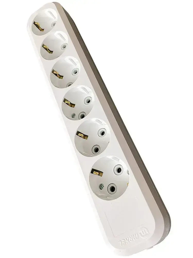 Колодка розеточная Makel 6 гнезд с заземлением 16А 3600Вт белая MGP 181