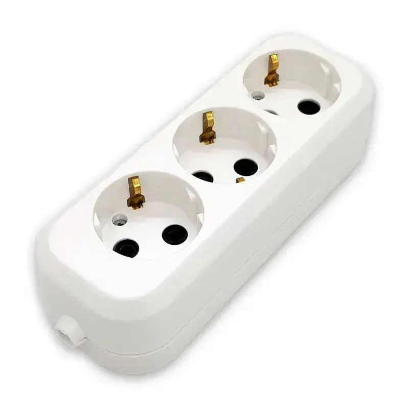 Колодка удлинителя на 3 розетки, с заземлением 250В 16А