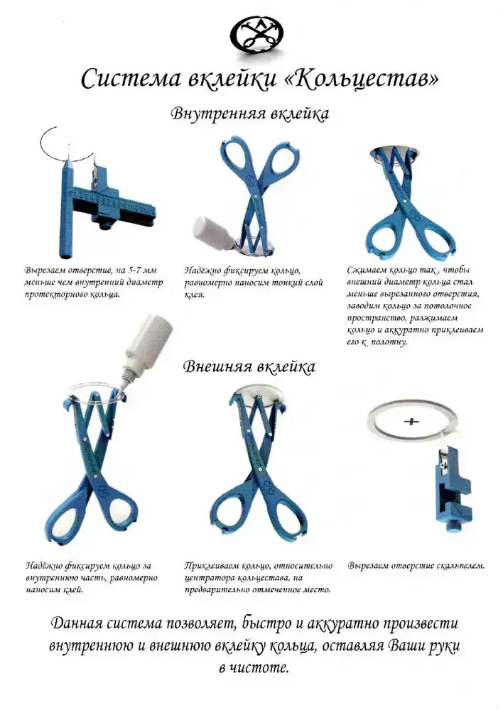 Кольцестав и вырезалка для натяжных потолков / для внутренней вклейки колец / вставщик и ножницы
