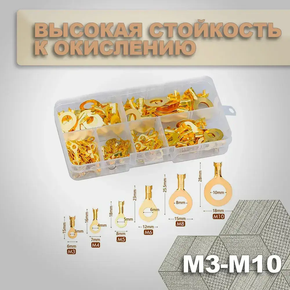 Кольцевые наконечники M3/M4/M5/M6/M8/M10, набор медных клемм для проводов 150шт.