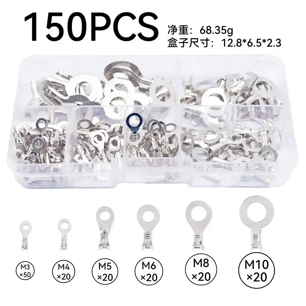 Кольцевые наконечники M3/M4/M5/M6/M8/M10, набор медных клемм для проводов 150шт. Лужёные.