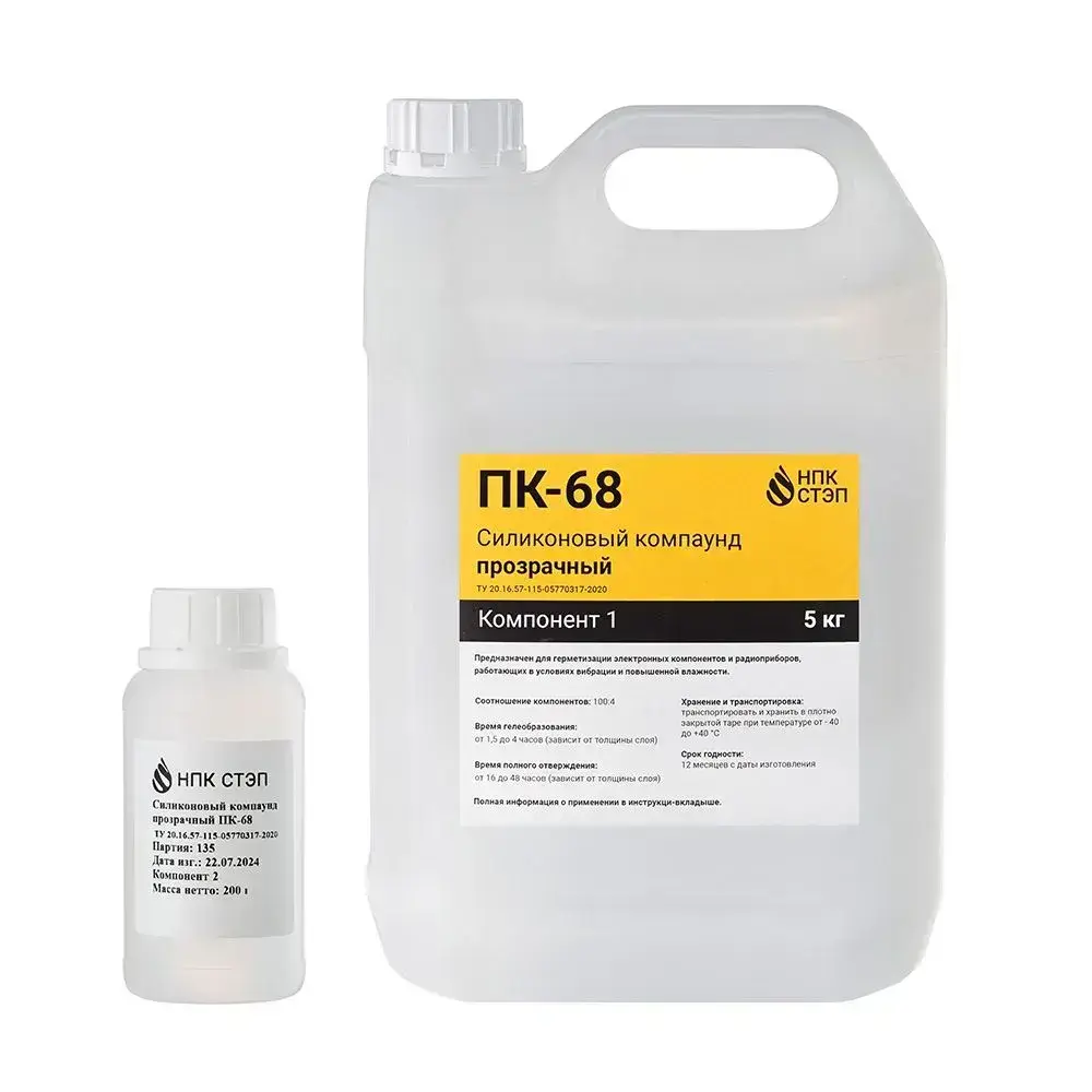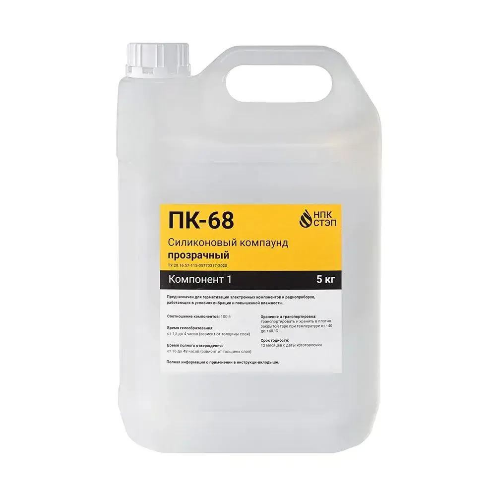 Компаунд силиконовый ПК-68 НПК СТЭП двухкомпонентный прозрачный для герметизации электронных компонентов и радиоприборов, 5,2 кг