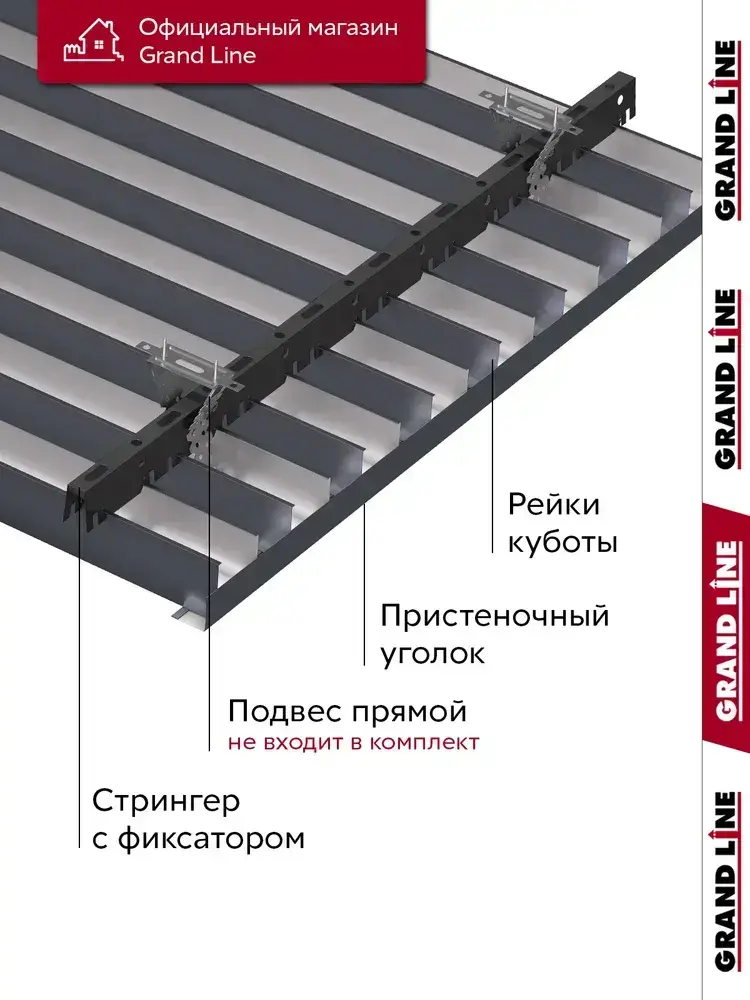 Комплект кубообразного потолка Grand Line Ш30/В30 1,7х1,7м Графит