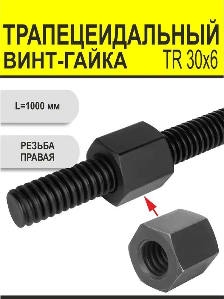 Комплект TR 30x6 Трапецеидальный винт, трапецеидальная гайка шестигранная.