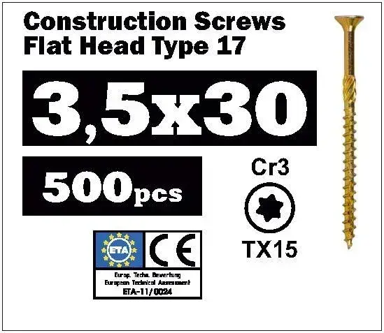 Конструкционный саморез по дереву 3,5х30 потай, TX15, (500 шт)