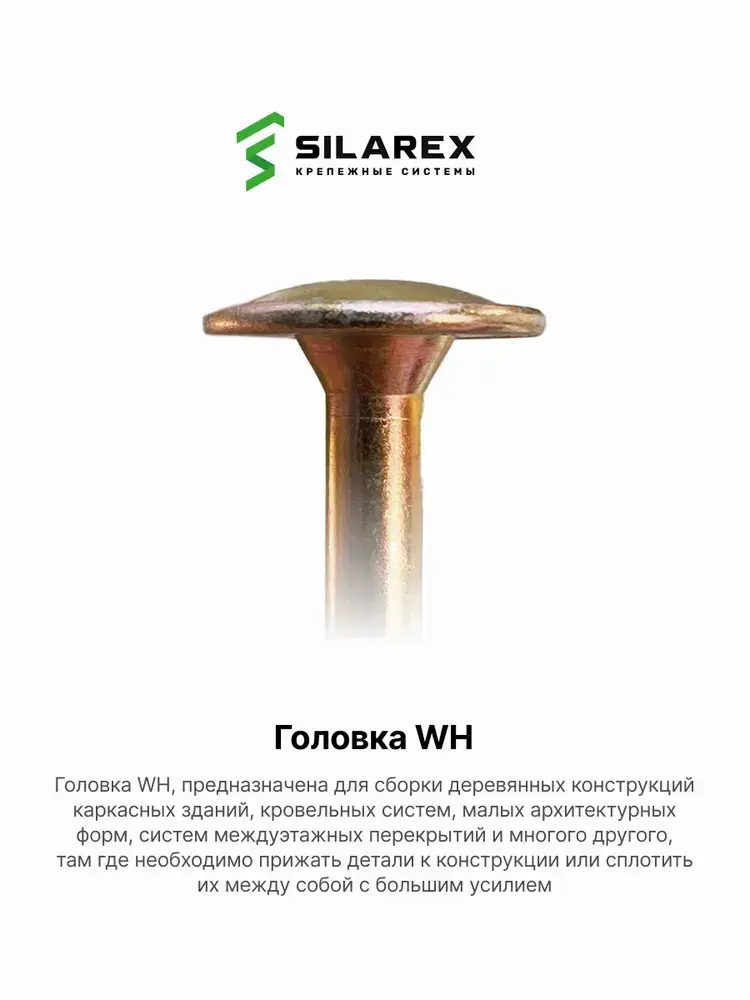 Конструкционный шуруп по дереву 8х120, головка WH - плоская пресс шайба