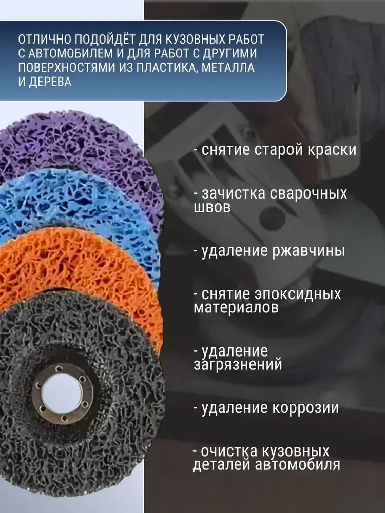 Коралловый диск 125 по металлу, круг коралловый 125 на УШМ, 4 цвета, на болгарку, разноцветные