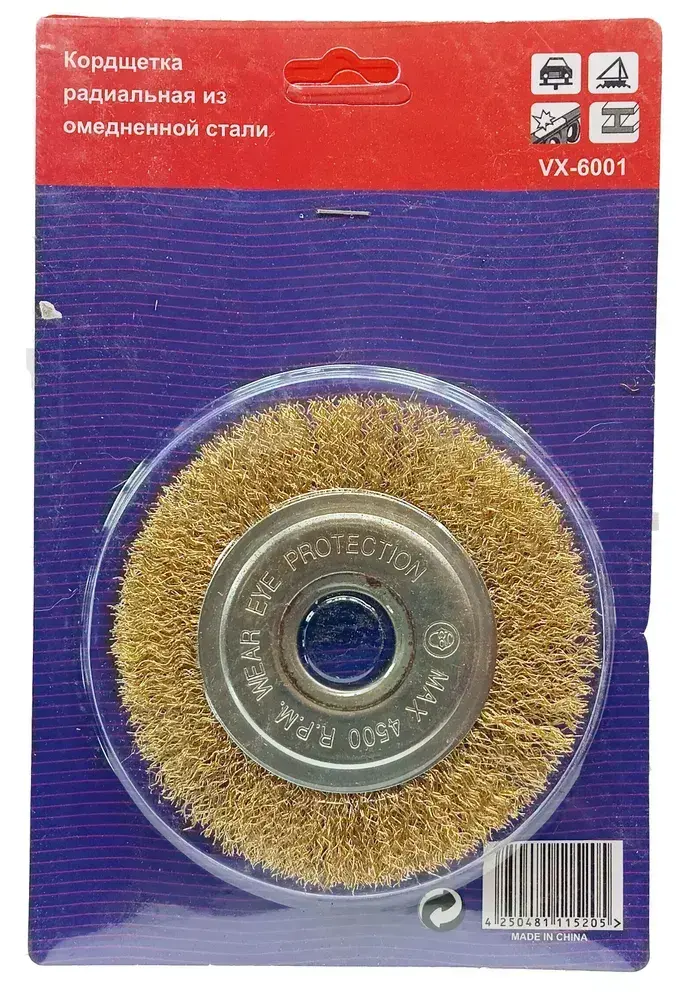 Кордщетка радиальная, плоская из омедненной стальной проволоки 0,3 мм, диаметр 115 мм, посадка 22,5 мм