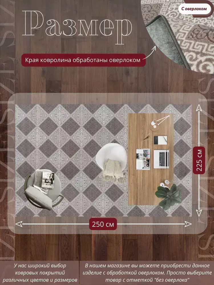 Ковролин метражом 2,5х2,25 м, безворсовой "Каскад", бежево-коричневый с оверлоком