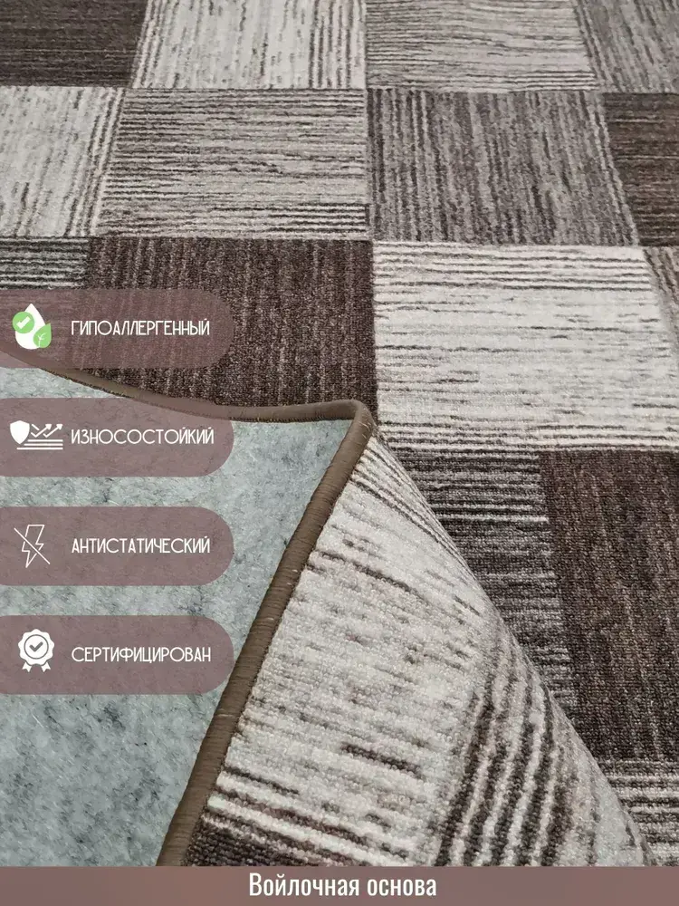 Ковролин метражом 2,5х2,25 м, безворсовой "Плитка", коричнево-серая с оверлоком