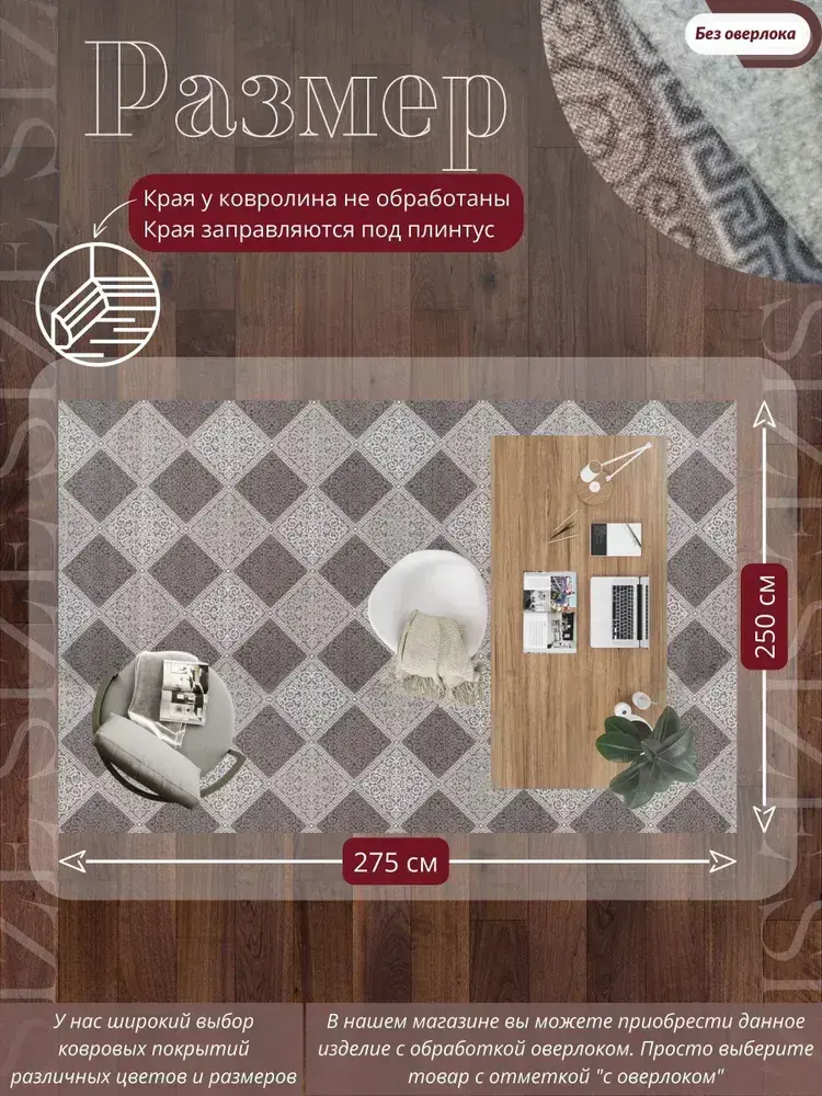 Ковролин метражом 2,5х2,75 м, безворсовой "Каскад", бежево-коричневый без оверлока
