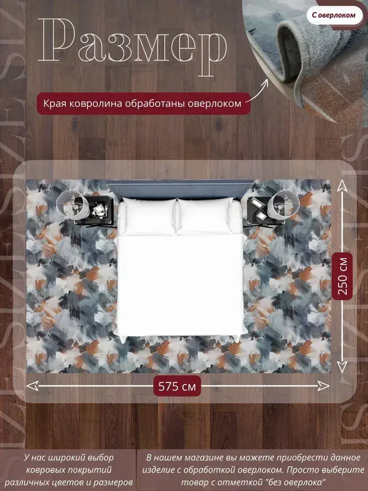 Ковролин метражом 2,5х5,75 м, безворсовой "Акварель", многоцветный с оверлоком