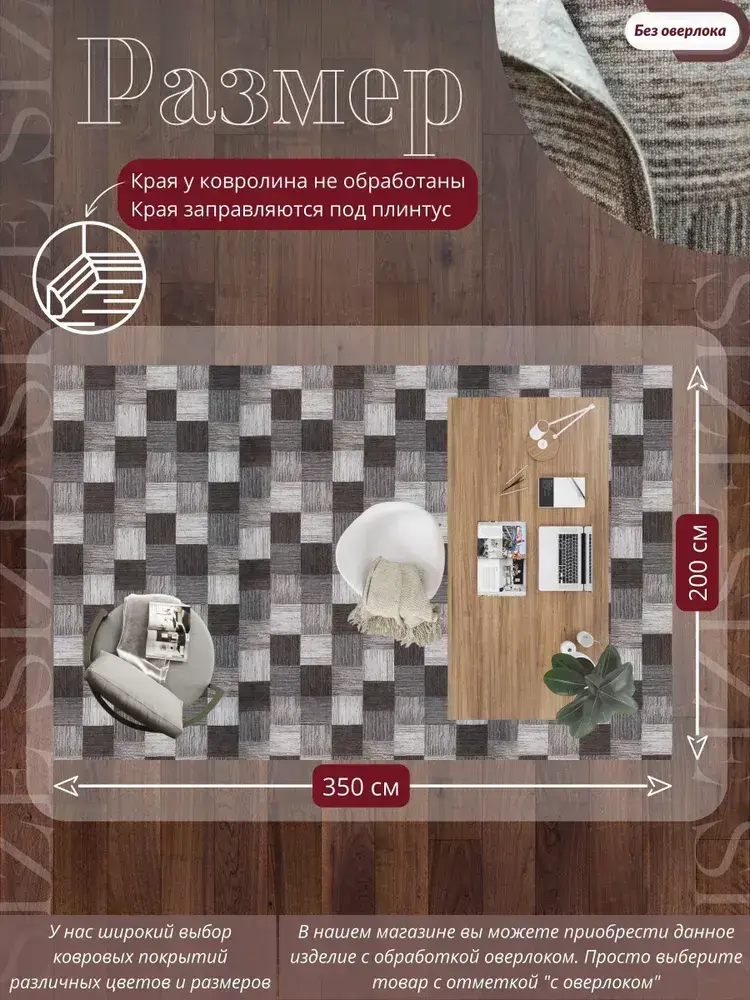 Ковролин метражом 2х3,5 м, безворсовой "Плитка", коричнево-серая без оверлока