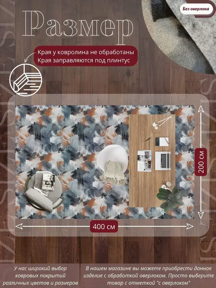 Ковролин метражом 2х4 м, безворсовой "Акварель", многоцветный без оверлока