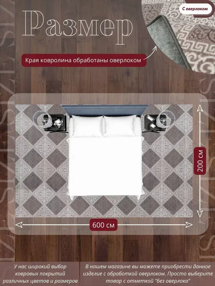 Ковролин метражом 2х6 м, безворсовой "Каскад", бежево-коричневый с оверлоком