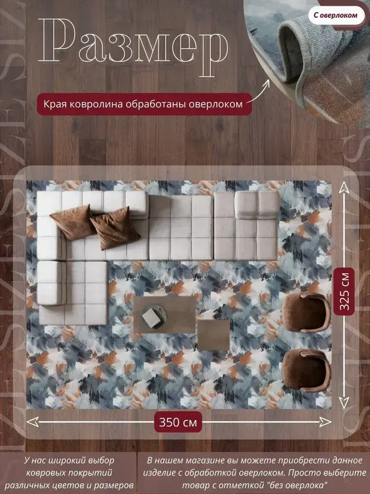 Ковролин метражом 3,5х3,25 м, безворсовой "Акварель", многоцветный с оверлоком