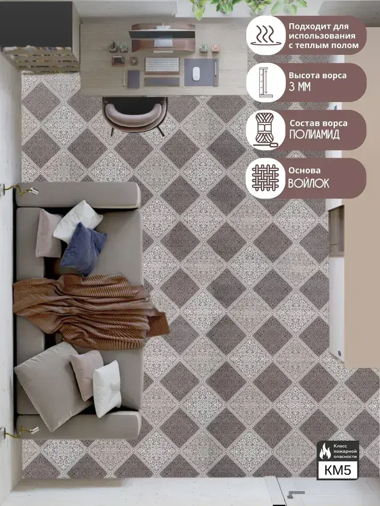 Ковролин метражом 3,5х3,25 м, безворсовой "Каскад", бежево-коричневый с оверлоком