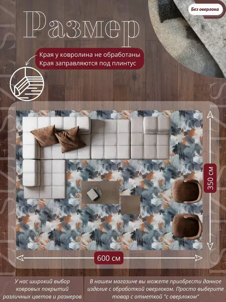 Ковролин метражом 3,5х6 м, безворсовой "Акварель", многоцветный без оверлока