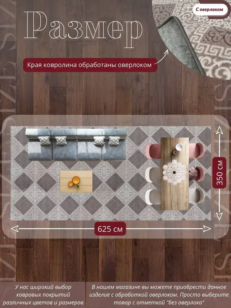 Ковролин метражом 3,5х6,25 м, безворсовой "Каскад", бежево-коричневый с оверлоком