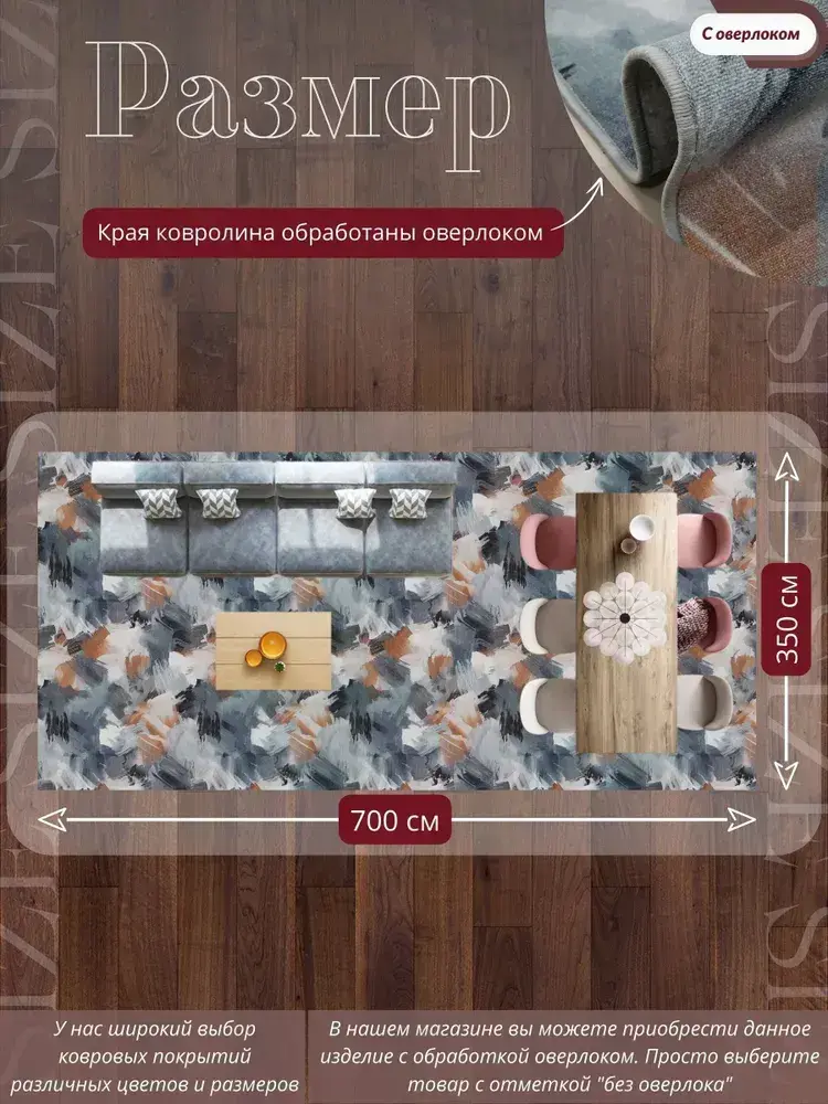 Ковролин метражом 3,5х7 м, безворсовой "Акварель", многоцветный с оверлоком