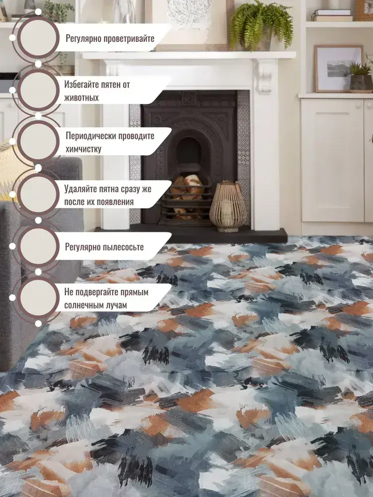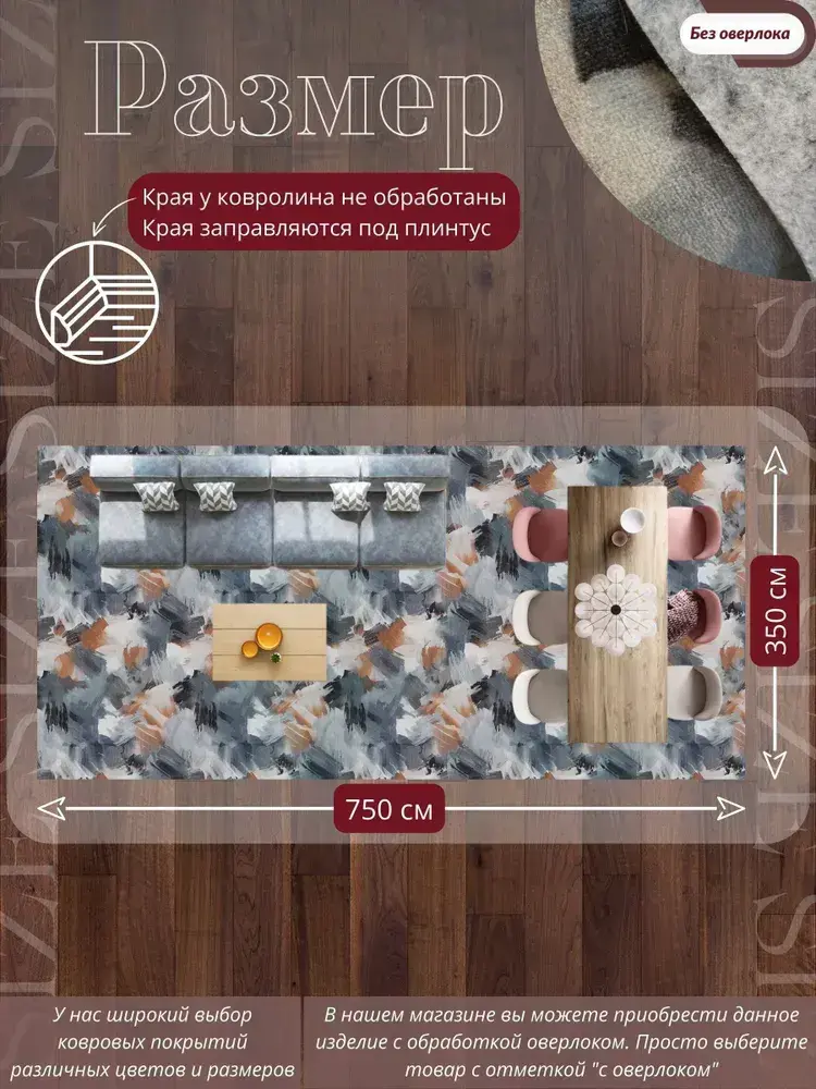 Ковролин метражом 3,5х7,5 м, безворсовой "Акварель", многоцветный без оверлока
