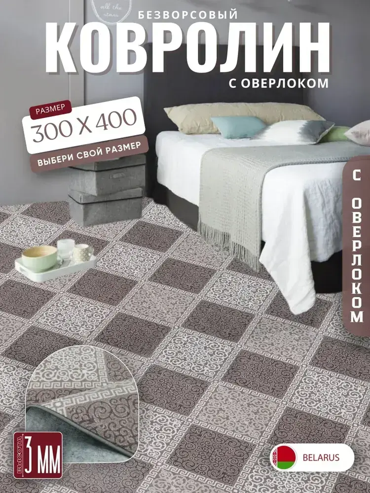 Ковролин метражом 3х4 м, безворсовой "Каскад", бежево-коричневый с оверлоком