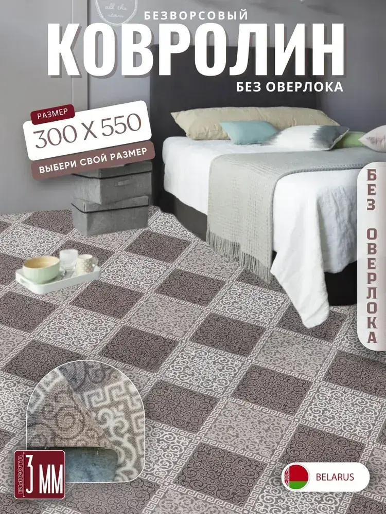 Ковролин метражом 3х5,5 м, безворсовой "Каскад", бежево-коричневый без оверлока