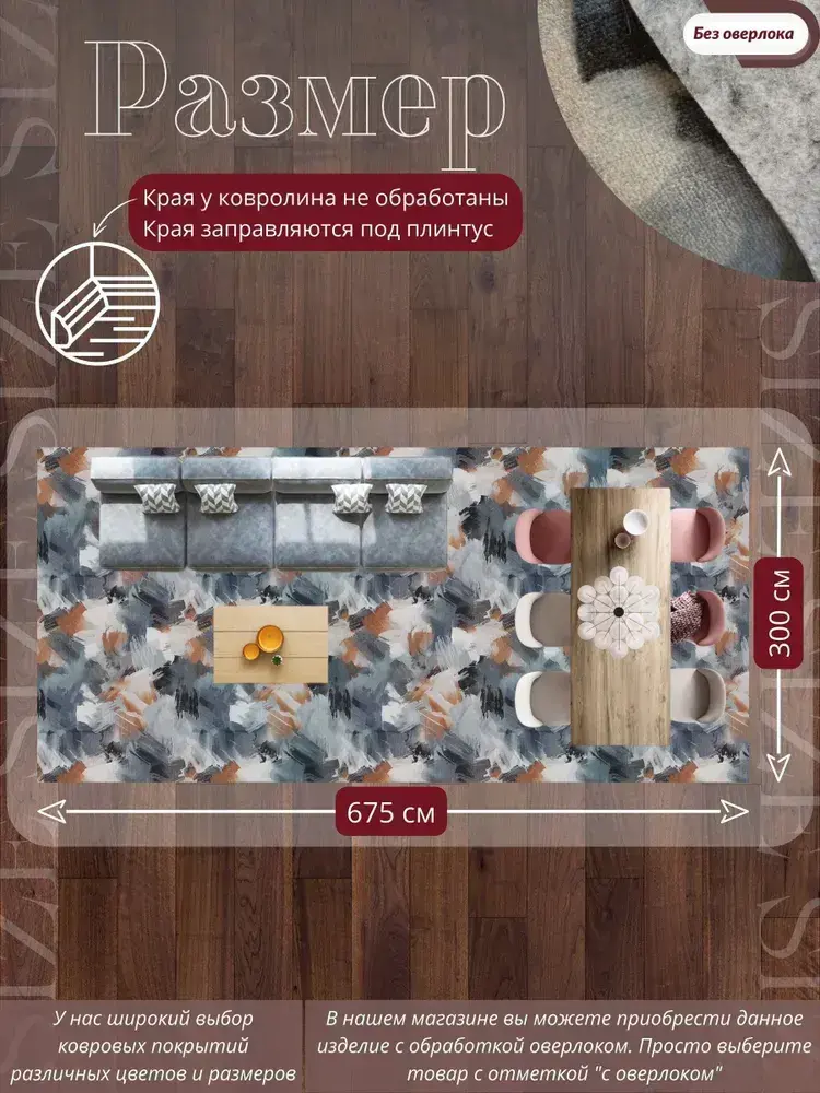 Ковролин метражом 3х6,75 м, безворсовой "Акварель", многоцветный без оверлока