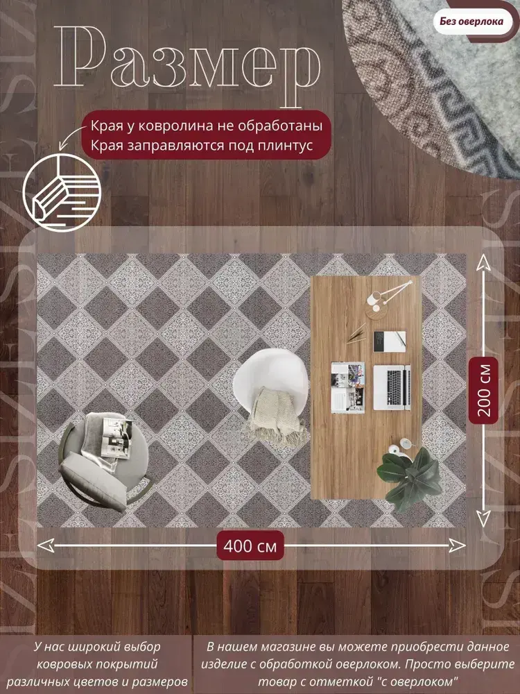 Ковролин метражом 4х2 м, безворсовой "Каскад", бежево-коричневый без оверлока