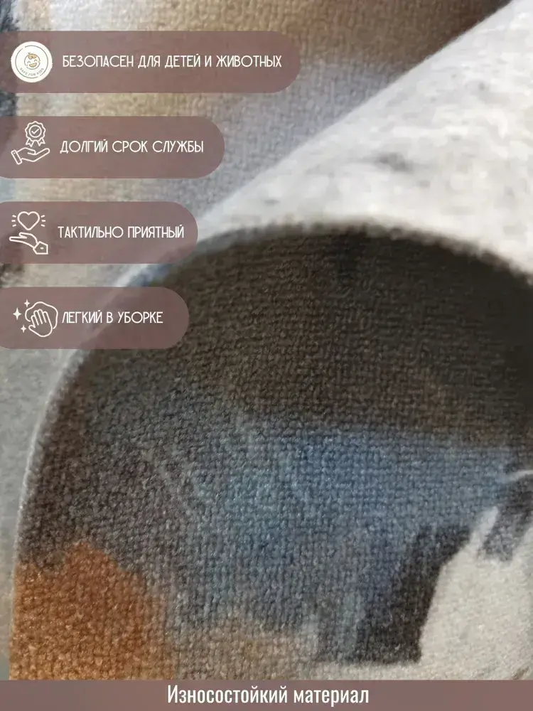 Ковролин метражом 4х4,5 м, безворсовой "Акварель", многоцветный без оверлока