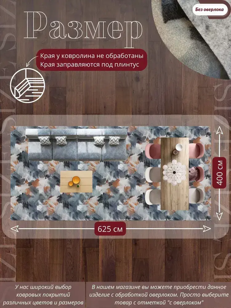 Ковролин метражом 4х6,25 м, безворсовой "Акварель", многоцветный без оверлока