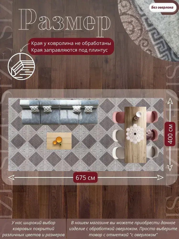 Ковролин метражом 4х6,75 м, безворсовой "Каскад", бежево-коричневый без оверлока