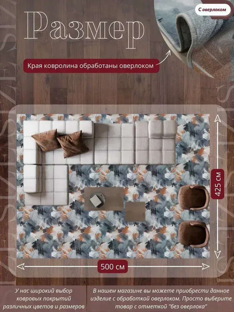 Ковролин метражом 5х4,25 м, безворсовой "Акварель", многоцветный с оверлоком