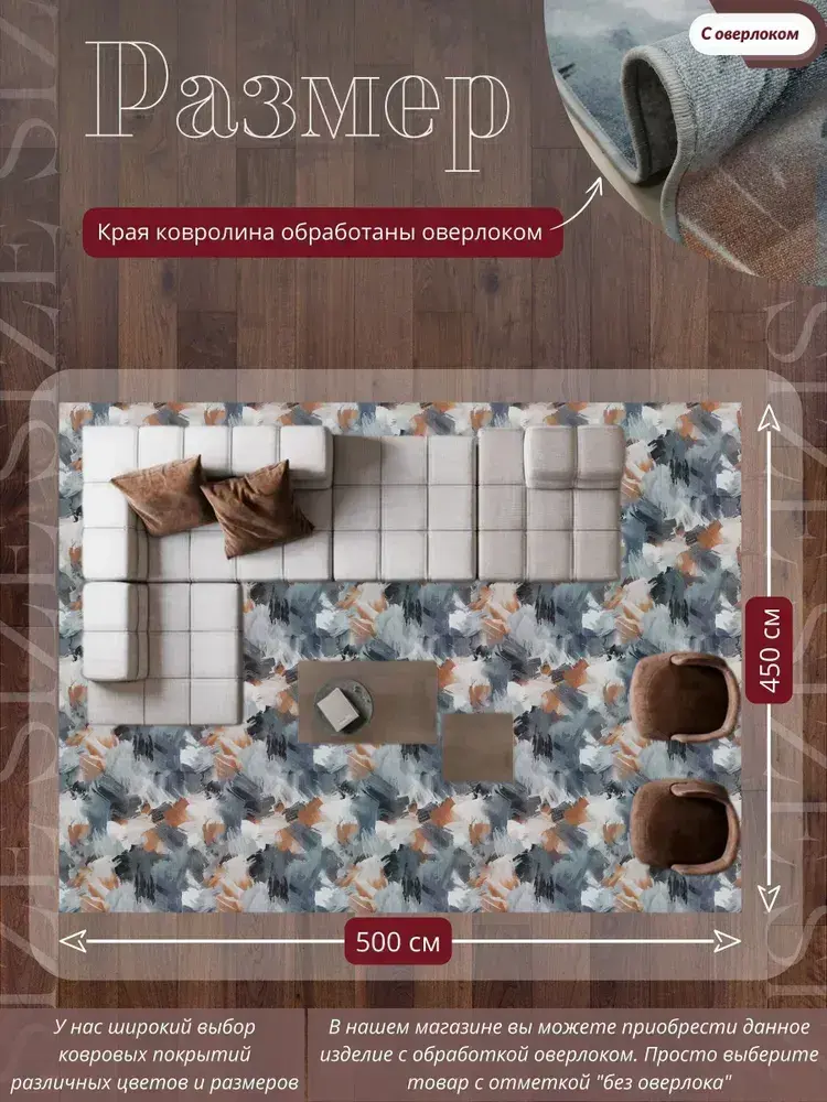 Ковролин метражом 5х4,5 м, безворсовой "Акварель", многоцветный с оверлоком