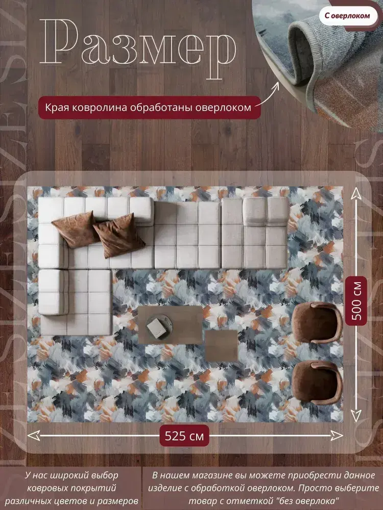 Ковролин метражом 5х5,25 м, безворсовой "Акварель", многоцветный с оверлоком