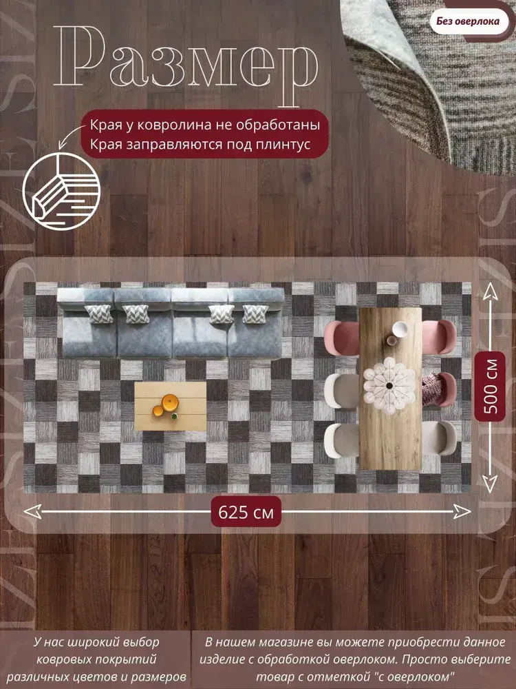 Ковролин метражом 5х6,25 м, безворсовой "Плитка", коричнево-серая без оверлока