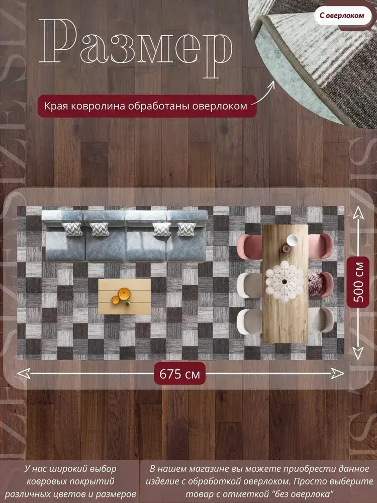 Ковролин метражом 5х6,75 м, безворсовой "Плитка", коричнево-серая с оверлоком