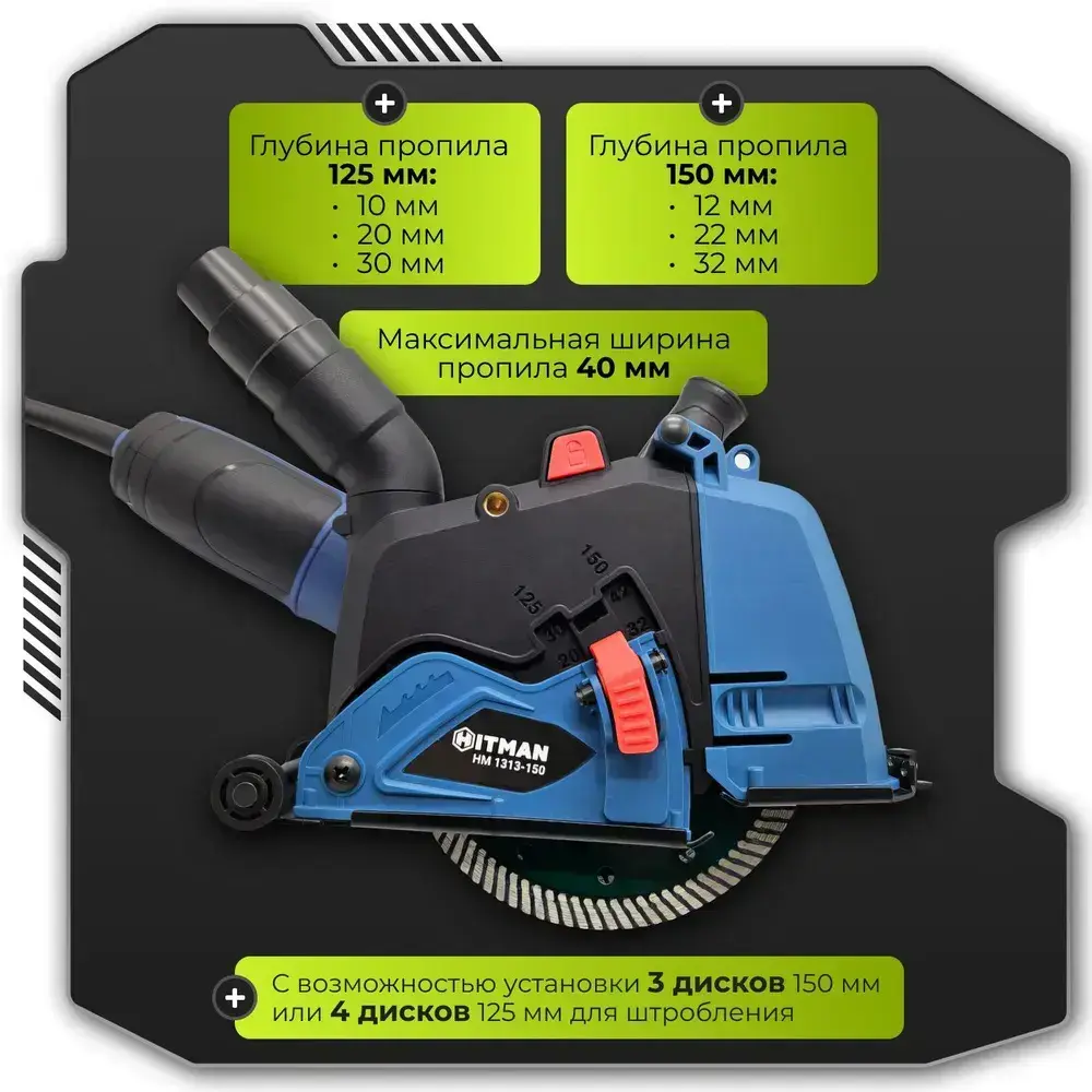 Кожух защитный вытяжной для штробления Hitman 1313-150 на УШМ 125-150 мм / насадка на болгарку / насадка-штроборез
