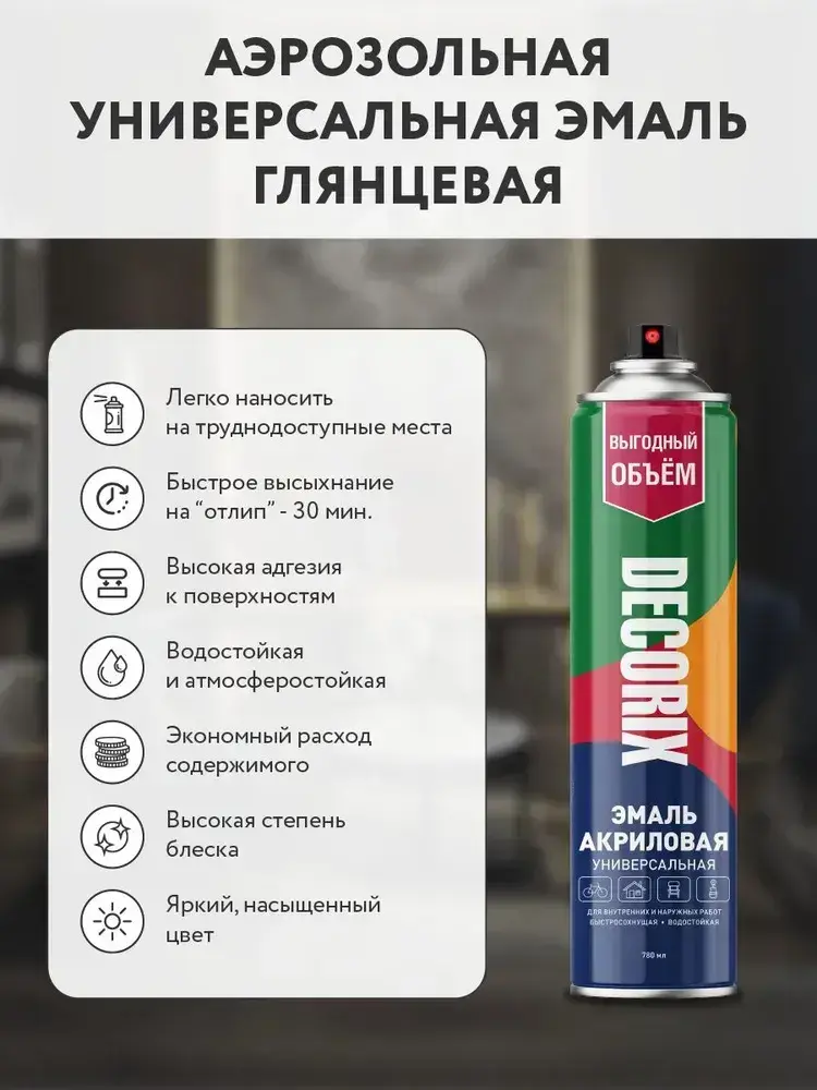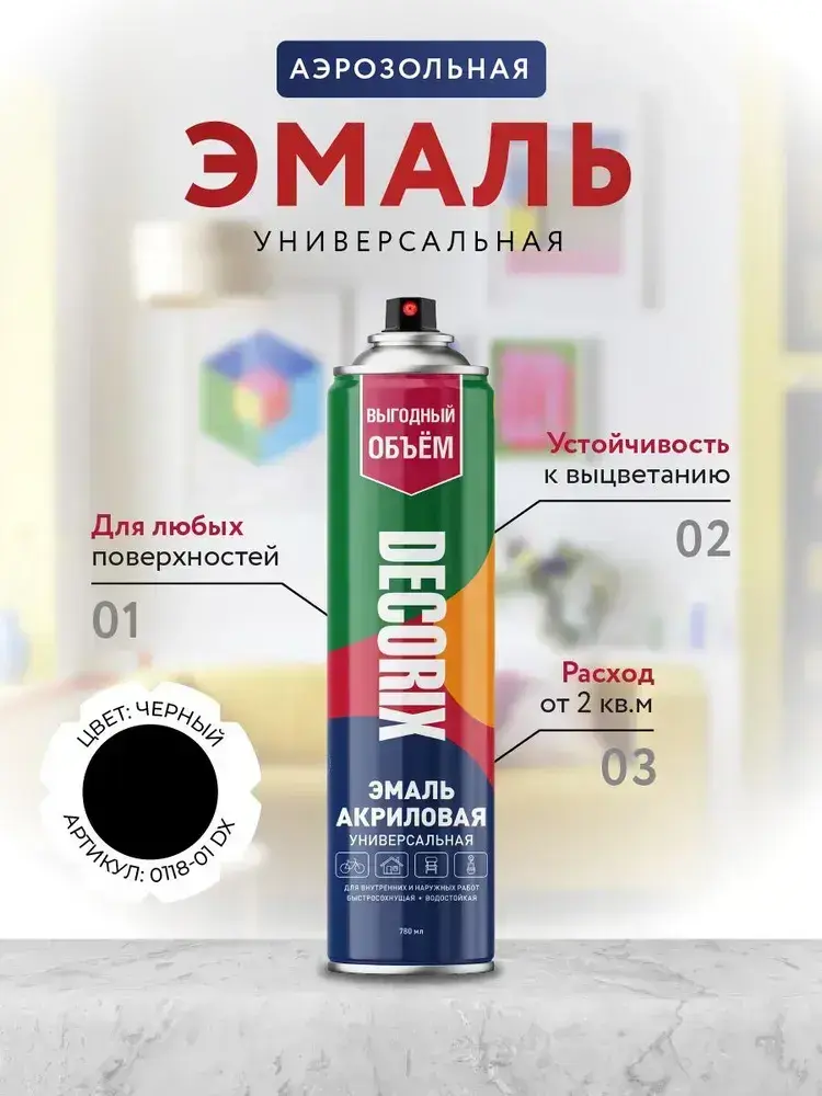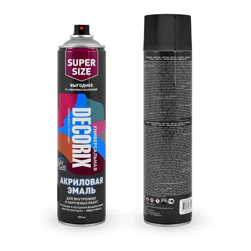 Краска аэрозольная черная глянцевая акриловая DECORIX - эмаль в баллончике для любых поверхностей большой объем 780 мл