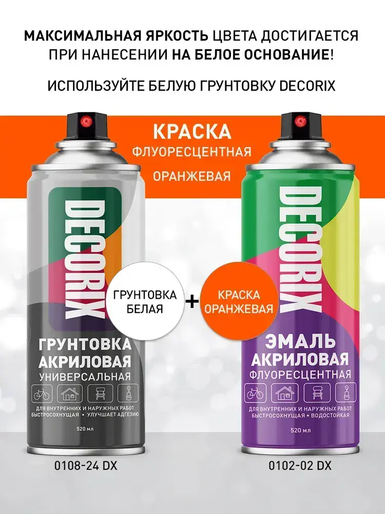 Краска аэрозольная оранжевая флуоресцентная матовая DECORIX - эмаль акриловая в баллончике для любых поверхностей 520 мл