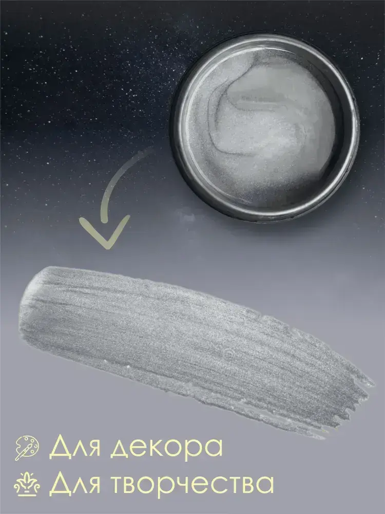 Краска акриловая для рисования, творчества и декора, по дереву, металлу 250гр СЕРЕБРО металлик