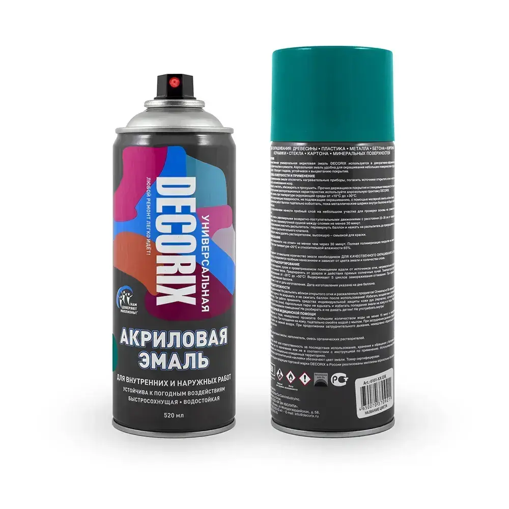 Краска бирюзовая в баллончике глянцевая акриловая DECORIX - "Морская волна" эмаль аэрозольная для любых поверхностей 520 мл