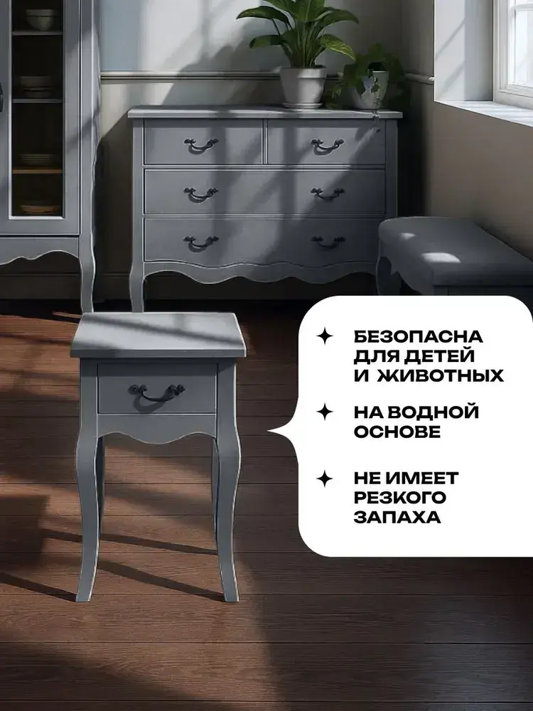 Краска для мебели 800гр без запаха быстросохнущая Aturi Design Classic Лакричная ночь серый графит матовое покрытие; для кухни, дверей, дерева, декора, безопасная, меловая
