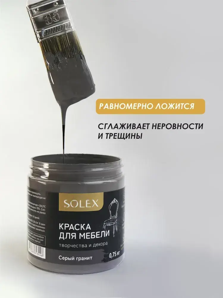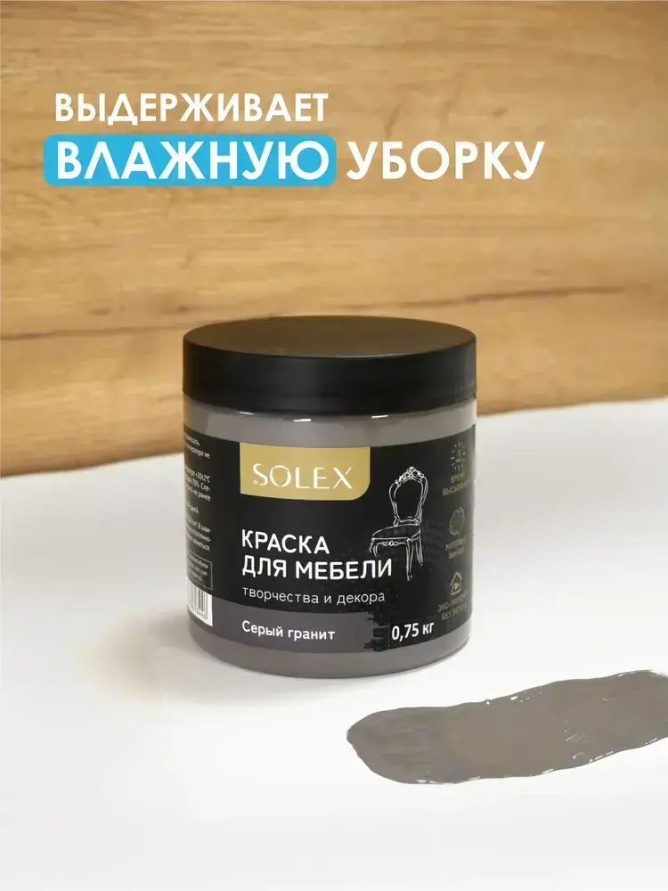 Краска для мебели без запаха цвет Серый Гранит SOLEX 0,75кг
